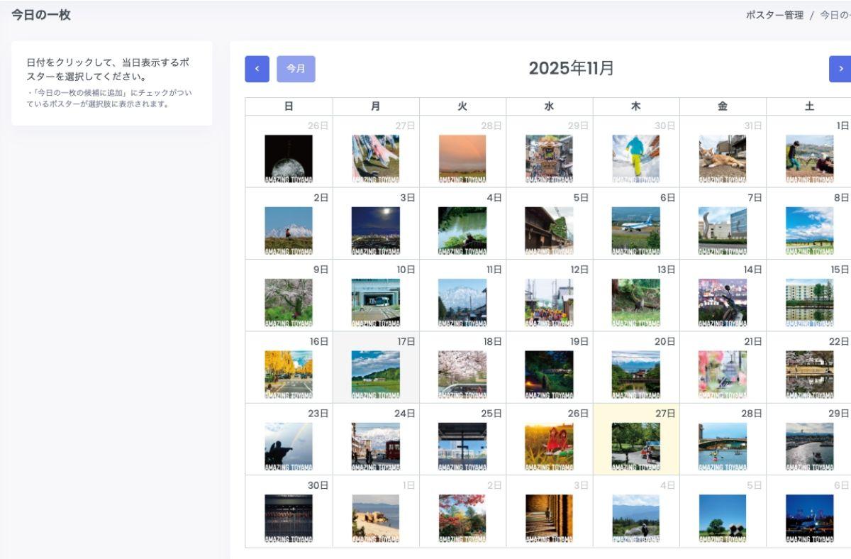カレンダーのようなUIで使いやすい「今日の一枚」の管理画面