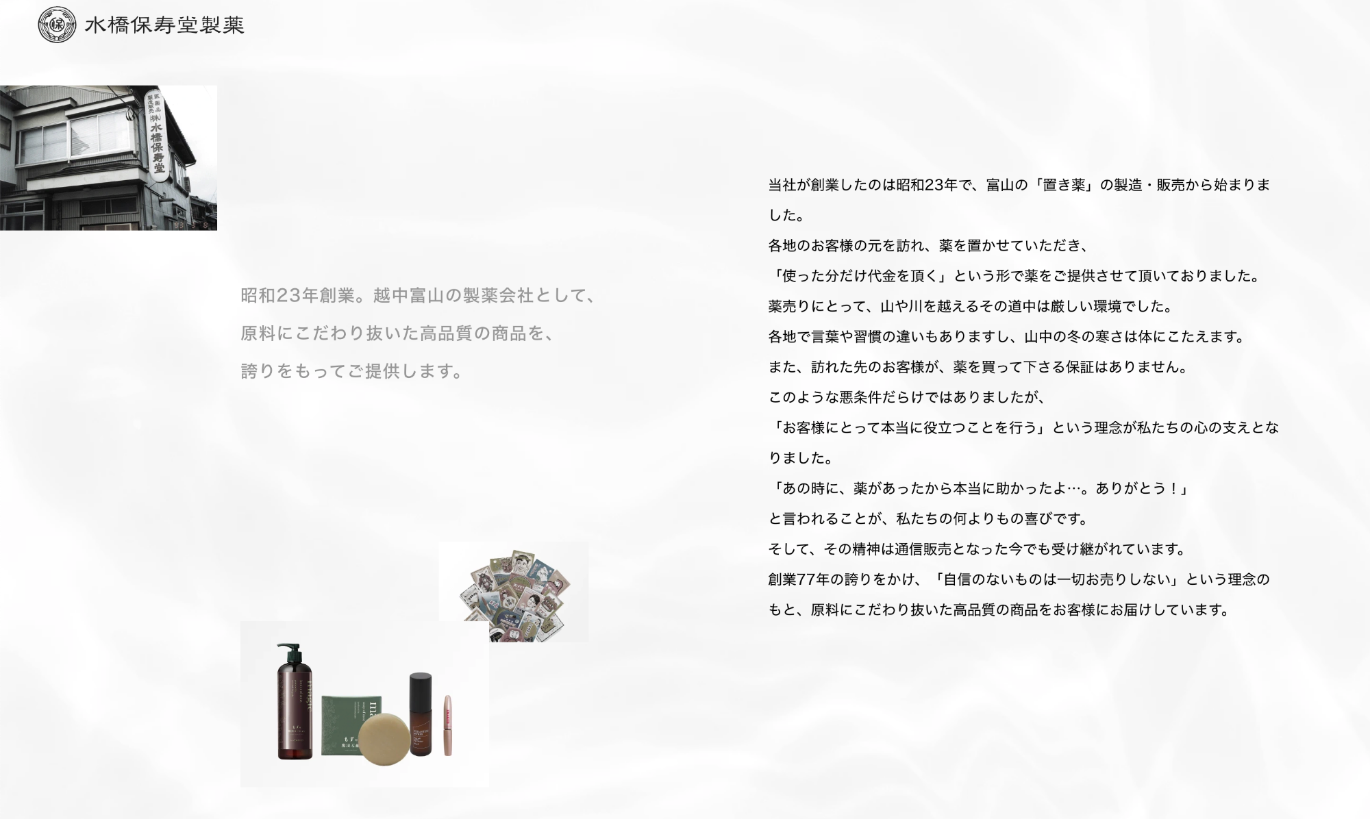 この強い信念を掲げ、長年にわたり地元・富山で信頼を積み重ねてきた水橋保寿堂製薬様。